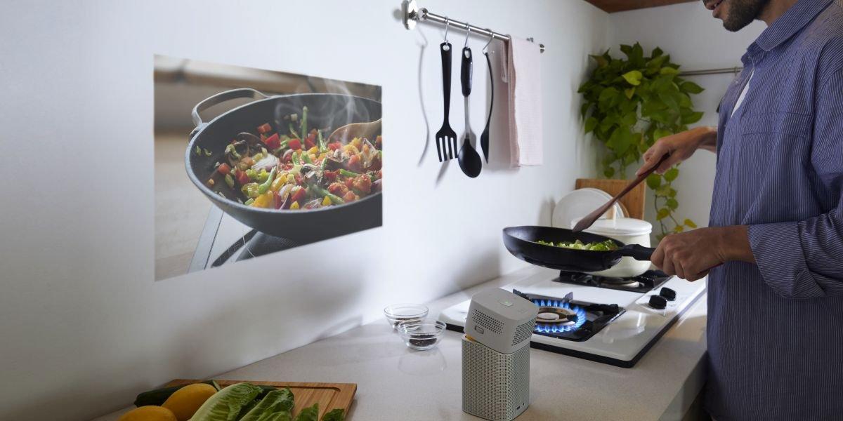 Folosiți în schimb un mini proiector portabil, afișați conținutul pe un perete și urmați pașii cu ușurință.