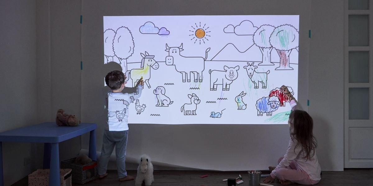 Imediat după ce ați vizionat un film în sufragerie, puteți duce proiectul în dormitorul copiilor dvs. pentru a viziona desene animate sau pentru a le prezenta animalele dintr-o grădină zoologică. Cu un proiector, este posibil să dați viață poveștilor copiilor sau să creați noi povești împreună cu imagini și videoclipuri proiectate pe pereți sau pe tavan.