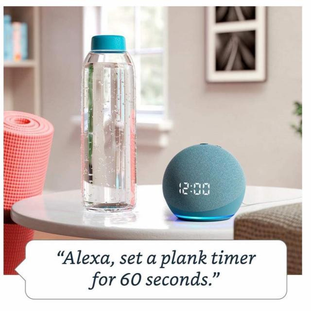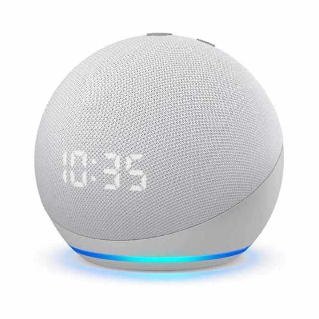 Faceti cunostinta cu Echo Dot cu ceas - Cel mai popular difuzor inteligent are un design elegant, compact, care se potriveste perfect spatiilor mici. Ofera voci clare si bas echilibrat pentru un sunet complet de care va puteti bucura oriunde in casa dvs.