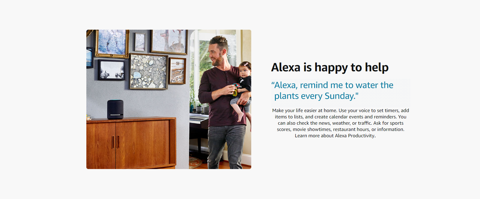 from every direction. You can also ask Alexa to set alarms, control compatible smart