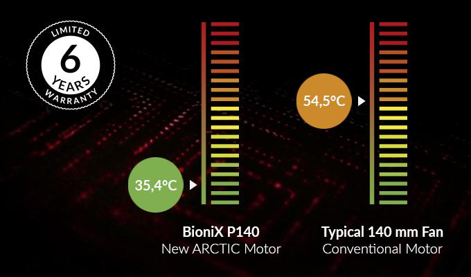 Ventilatorul garanteaza o racire extrem de eficienta, chiar si cu o rezistenta crescuta la aer. Prin urmare, BioniX P140 este