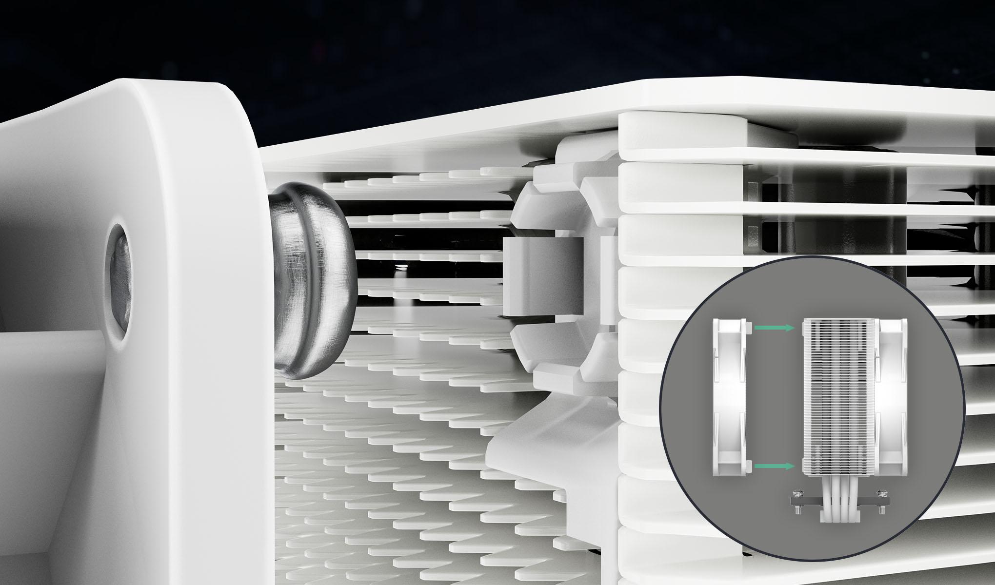 cool air out of the pc case through the heatsink. This side-flow design achieves even