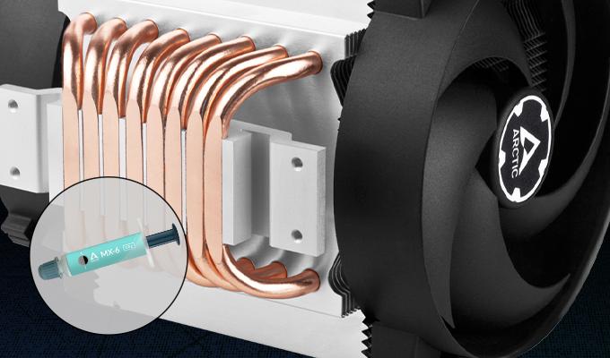 The Freezer 4U-M Rev. 2 comes with MX-6 thermal paste. ARCTIC's Ultimate Performance thermal paste reduces the heat build-up between the heat spreader of the CPU and the cooler. The thermal paste is neither conductive nor capacitive and therefore absolutely safe to use.