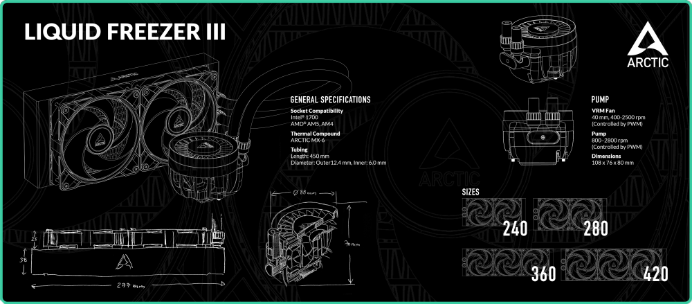 The mouse pad is a tribute to ARCTIC's latest water cooler. In addition to some