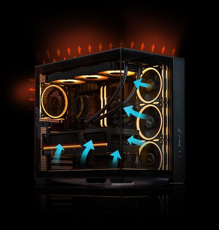 Experience a seamless view unobstructed by a front pillar, offering an unparalleled visual display of the internal components and ensuring your build shines from every angle.