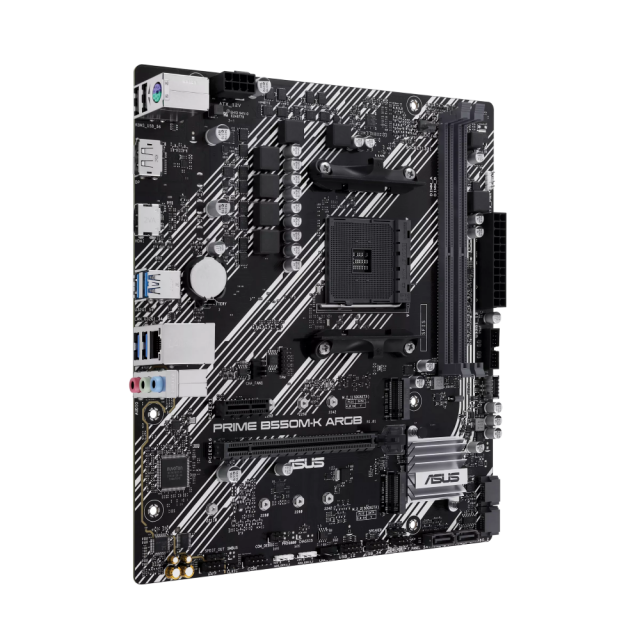 ASUS PRIME B550M-K ARGB este o placa de baza compacta si accesibila, ideala pentru sisteme moderne bazate pe procesoare AMD Ryzen. Ofera stabilitate, compatibilitate larga si iluminare ARGB integrata, fiind o alegere excelenta pentru configuratii eficiente si bine echilibrate.