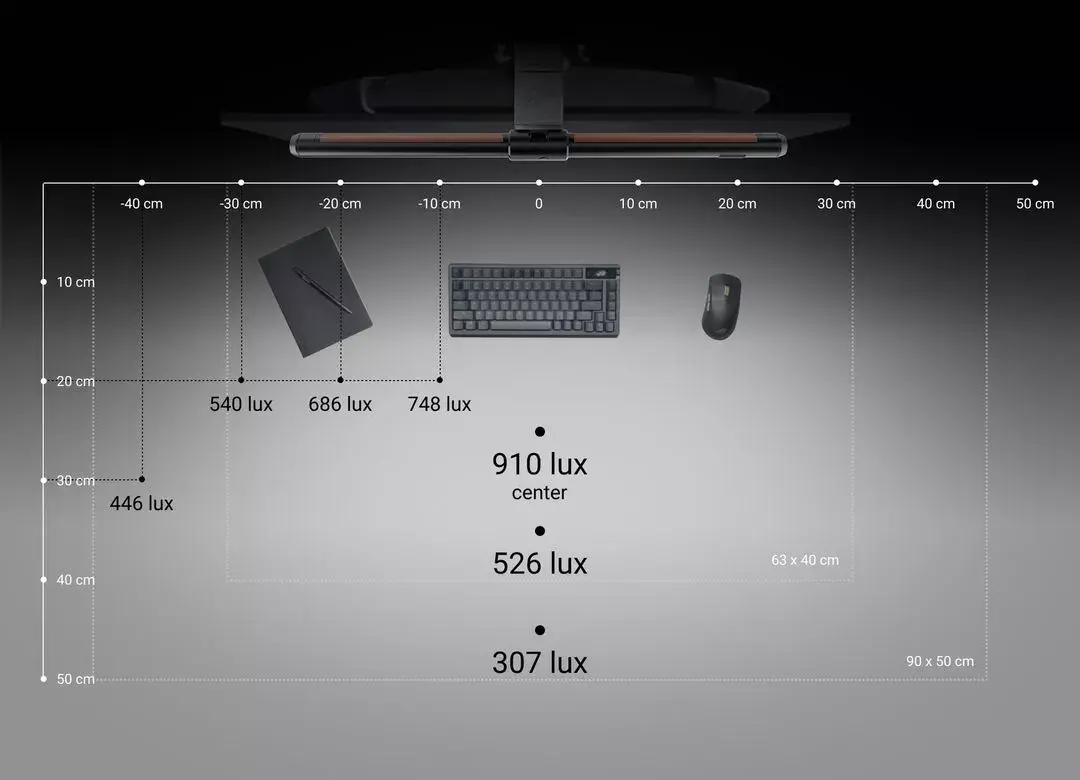 The ROG Aura Monitor Light Bar is designed to cast a soft glow on your desk to enhance the