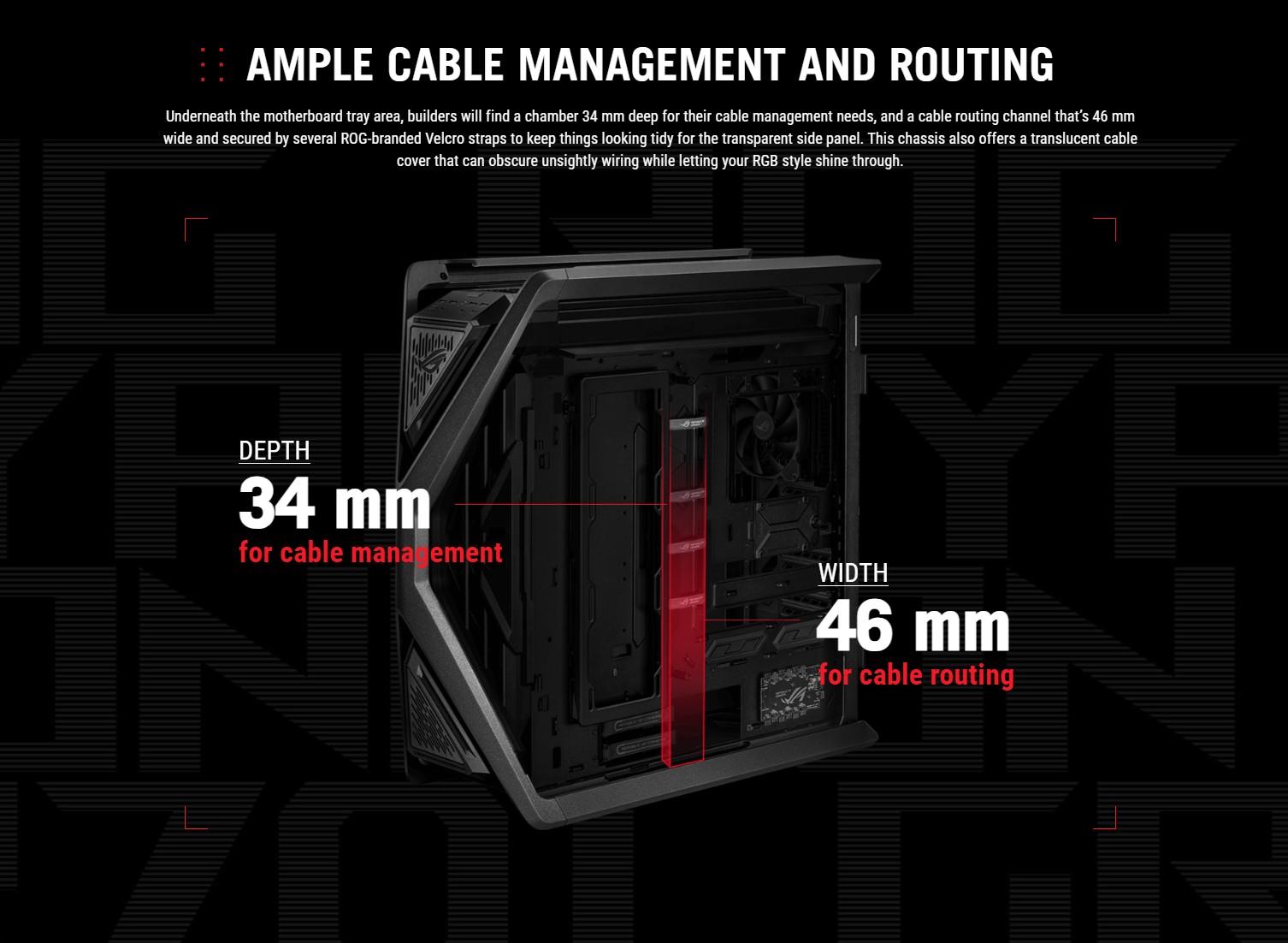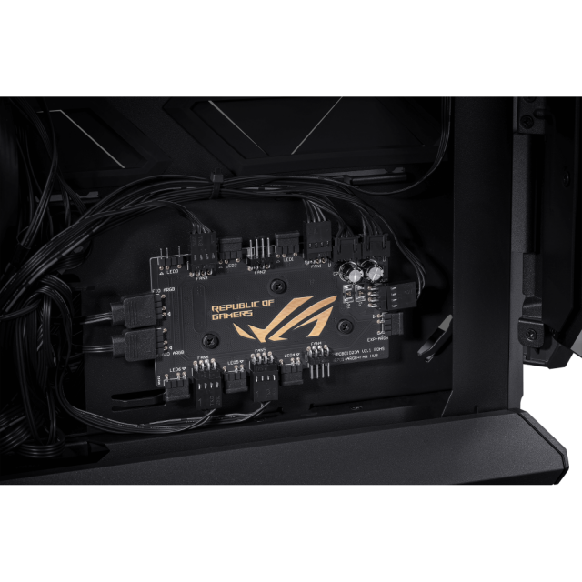 Last but not least, the shroud for your power supply unit features an open section for PSUs like the ROG Thor, which features a special OLED panel that displays your current watt consumption. The mesh topping the shroud is also shaped to reveal another subtle ROG logo, while being designed to prevent screws from falling within.