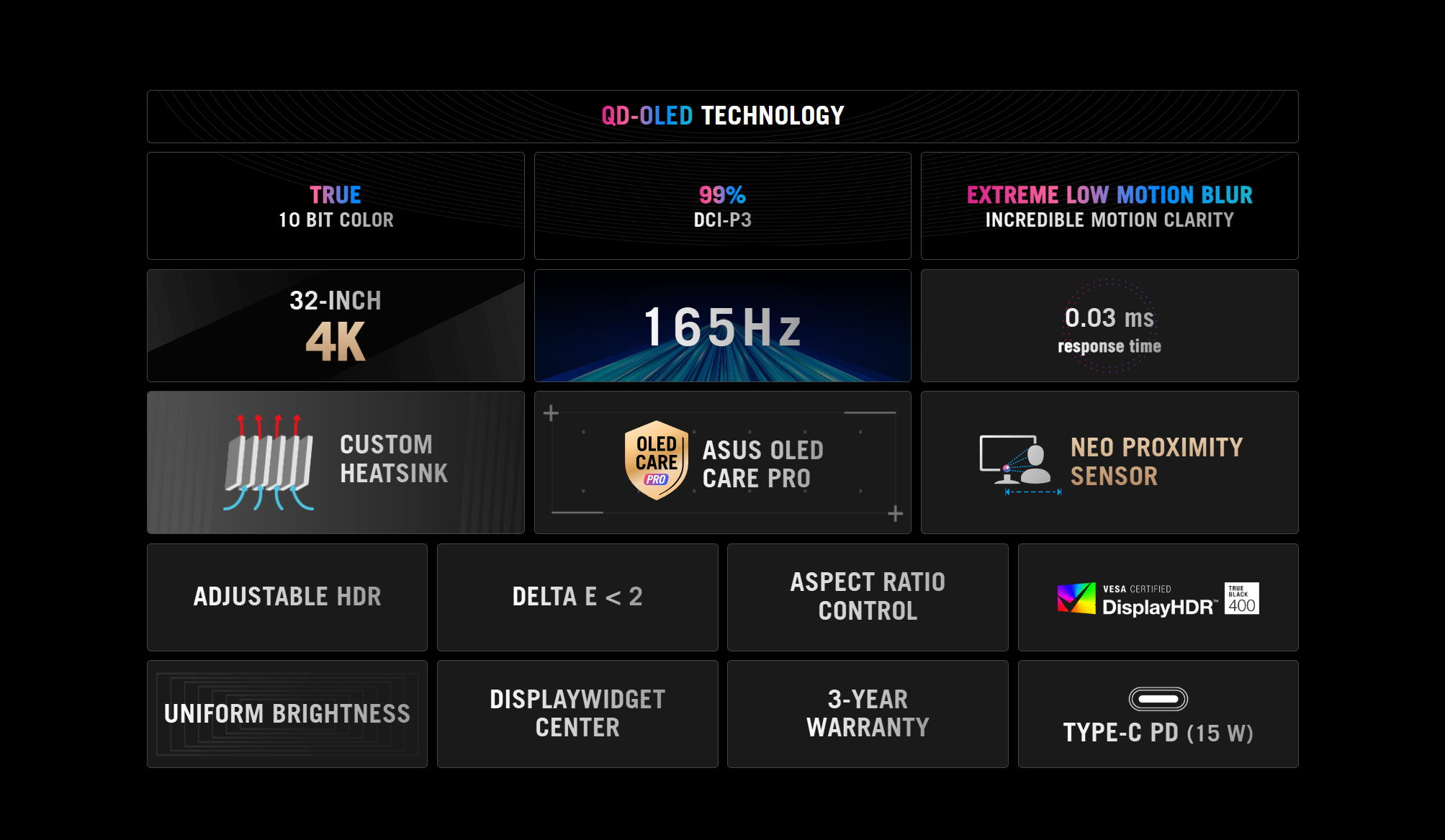 The ROG Strix OLED XG32UCDS is a 32-inch, 165Hz 4K gaming monitor. With the addition of the Neo Proximity Sensor in the new ROG OLED Care