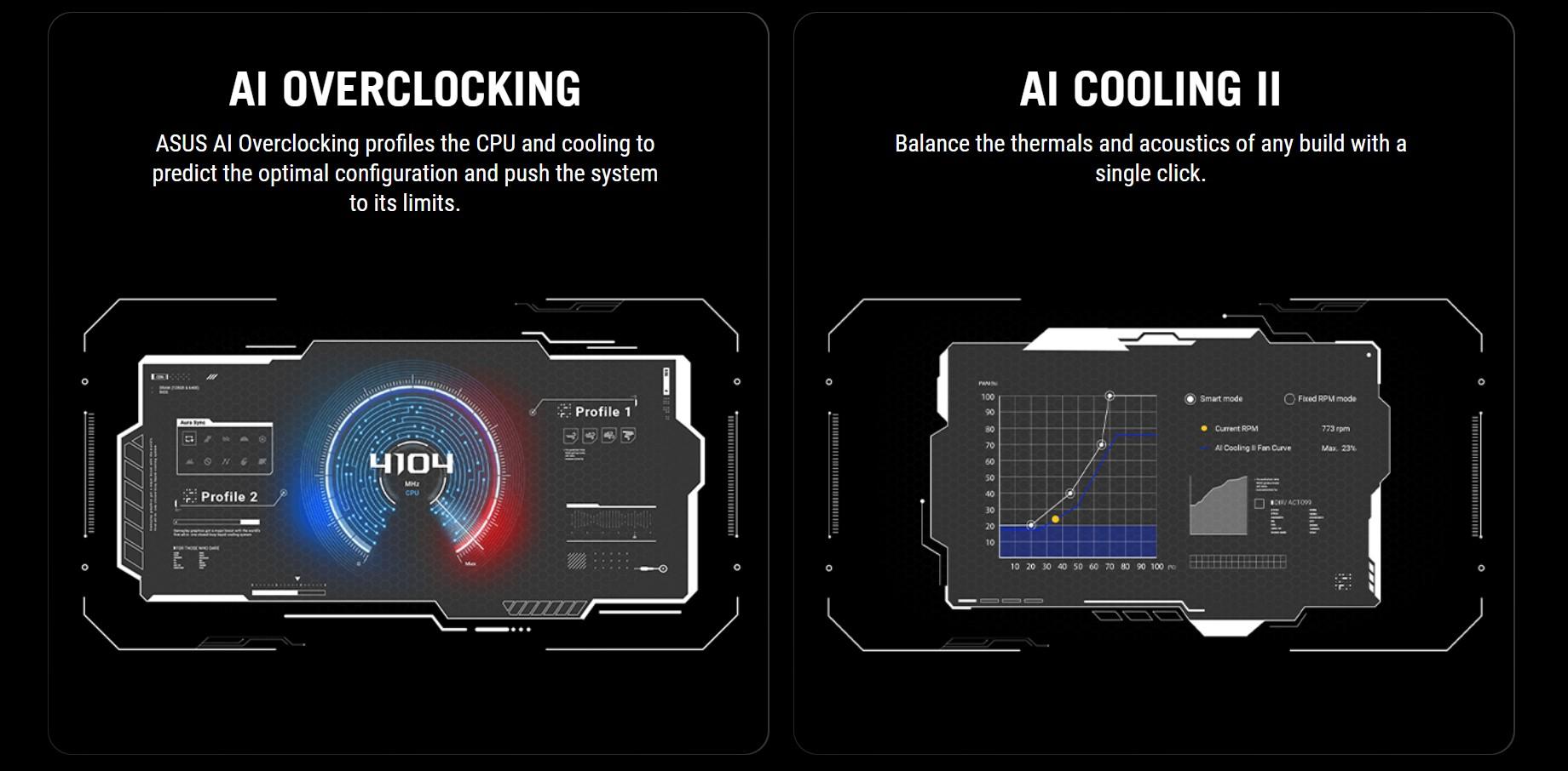 | Software Features | ROG Exclusive Software - ROG CPU-Z - Dolby Atmos ASUS Exclusive Software Armoury Crate - AIDA64 Extreme (60 days free trial) - Aura Creator - Aura Sync - Fan Xpert 4 (with AI Cooling II) - GameFirst - HWiNFO - Power Saving ASUS Driver Hub ASUS GlideX USB Wattage Watcher TurboV Core Adobe Creative Cloud (Free Trial) Norton 360 for Gamers (60 Days Free Trial) WinRAR (40 Days Free Trial) UEFI BIOS AI Overclocking Guide ASUS EZ DIY - ASUS CrashFree BIOS 3 - ASUS EZ Flash 3 - ASUS UEFI BIOS EZ Mode - ASUS MyHotkey Dynamic OC Switcher FlexKey |
