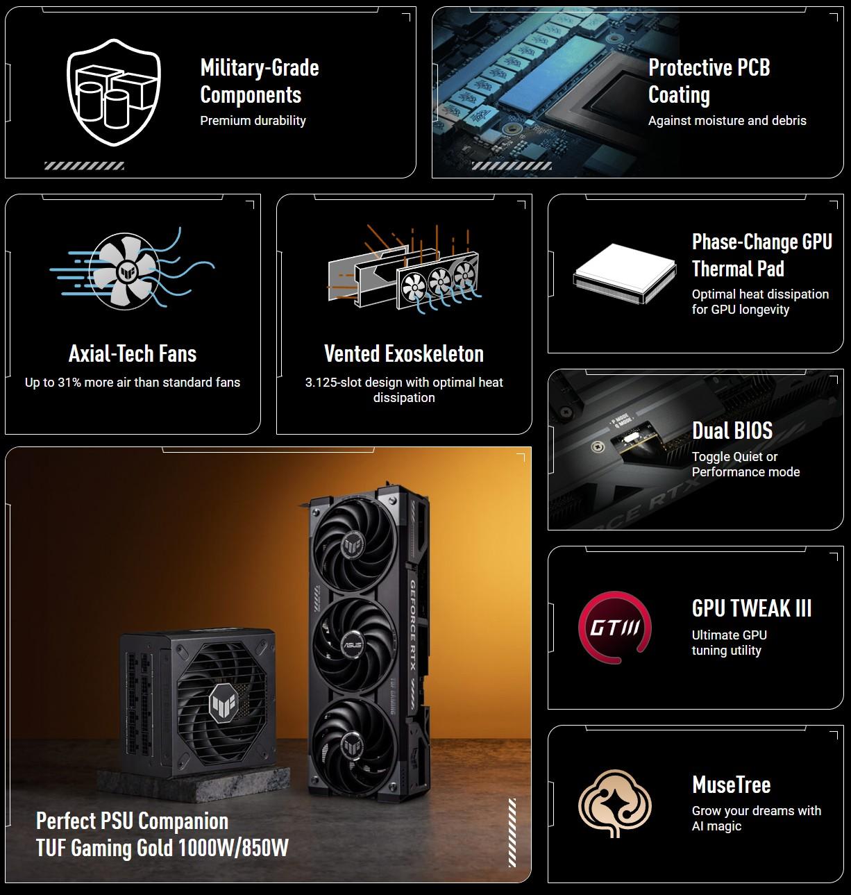 16GB GDDR7 | Software | ASUS GPU Tweak III & MuseTree & GeForce Game Ready Driver & Studio Driver: please download all software from the support site. |