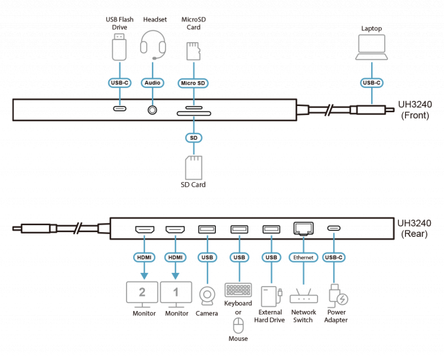 ATEN 11-in-1 USB-C Multiport Dock with Power Pass-Through UH3240