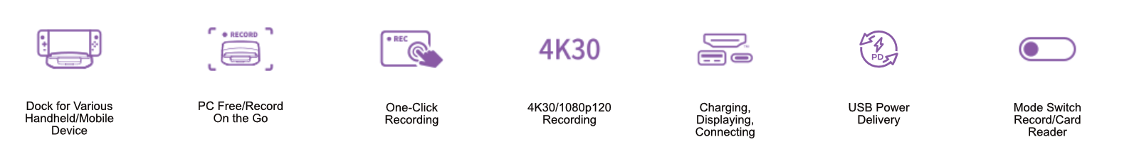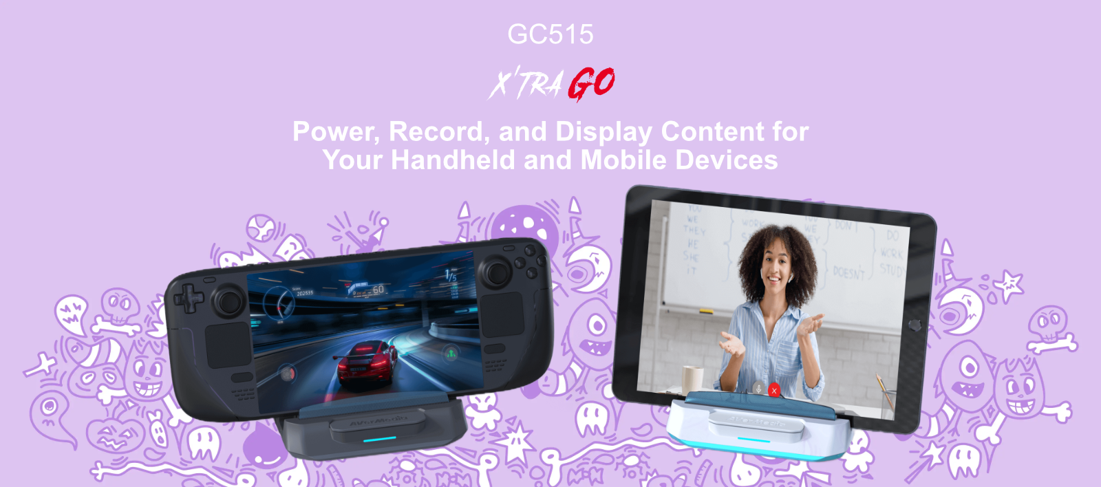 For vloggers, digital nomads, and IRL streamers, the GC515 allows you to record content from your handheld, phone, or tablet on the go. The dock can be powered by a 65W power bank or plane power sockets, ensuring you’re always ready to create.