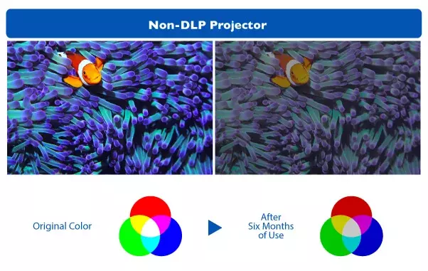 Comprising over two million micromirrors that reflect pure light through the color wheel, the DLP chip is hermetically sealed to resist heat for over 20,000 hours without degradation.