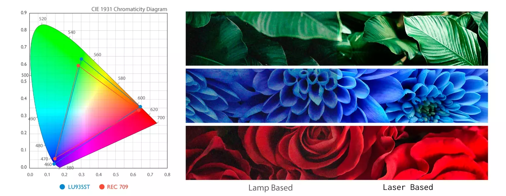 LU935ST’s powerful laser projection utilizes a dual color wheel system to produce unparalleled color performance that achieves a 92% Rec.709 color