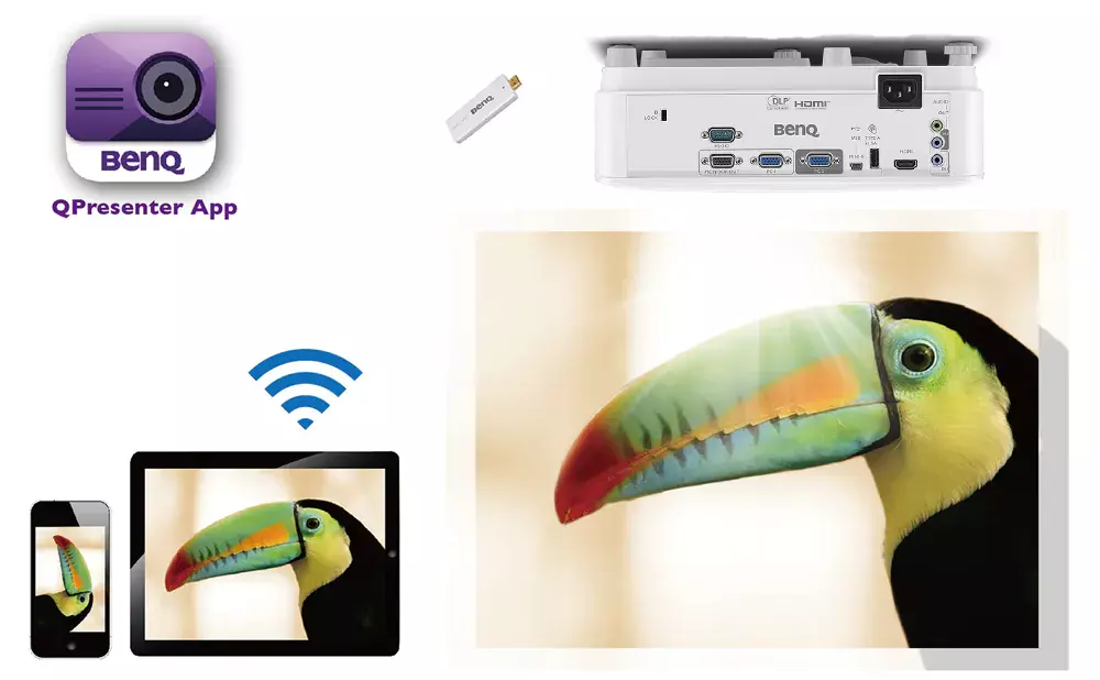 BenQ education projectors are ready for BYOD collaboration and creating more engaging lessons via QCast wireless dongle that allows up to 4 participants to stream content from smart devices or computers to the big screen, displaying them in 4 split screens.