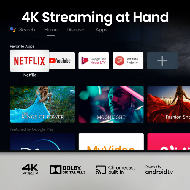 - Functii smart – Sistem inteligent integrat pentru acces rapid la aplicatii si streaming.