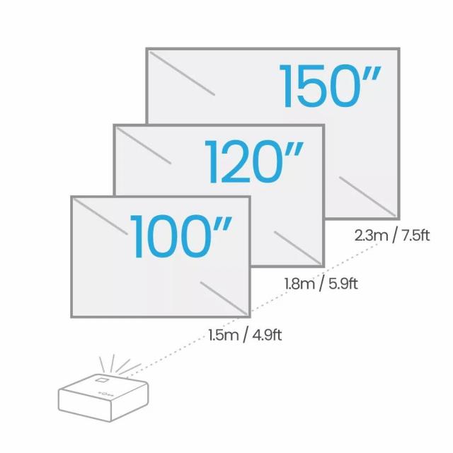 With a throw ratio of 0.69~0.83 and 1.2x zoom, you
