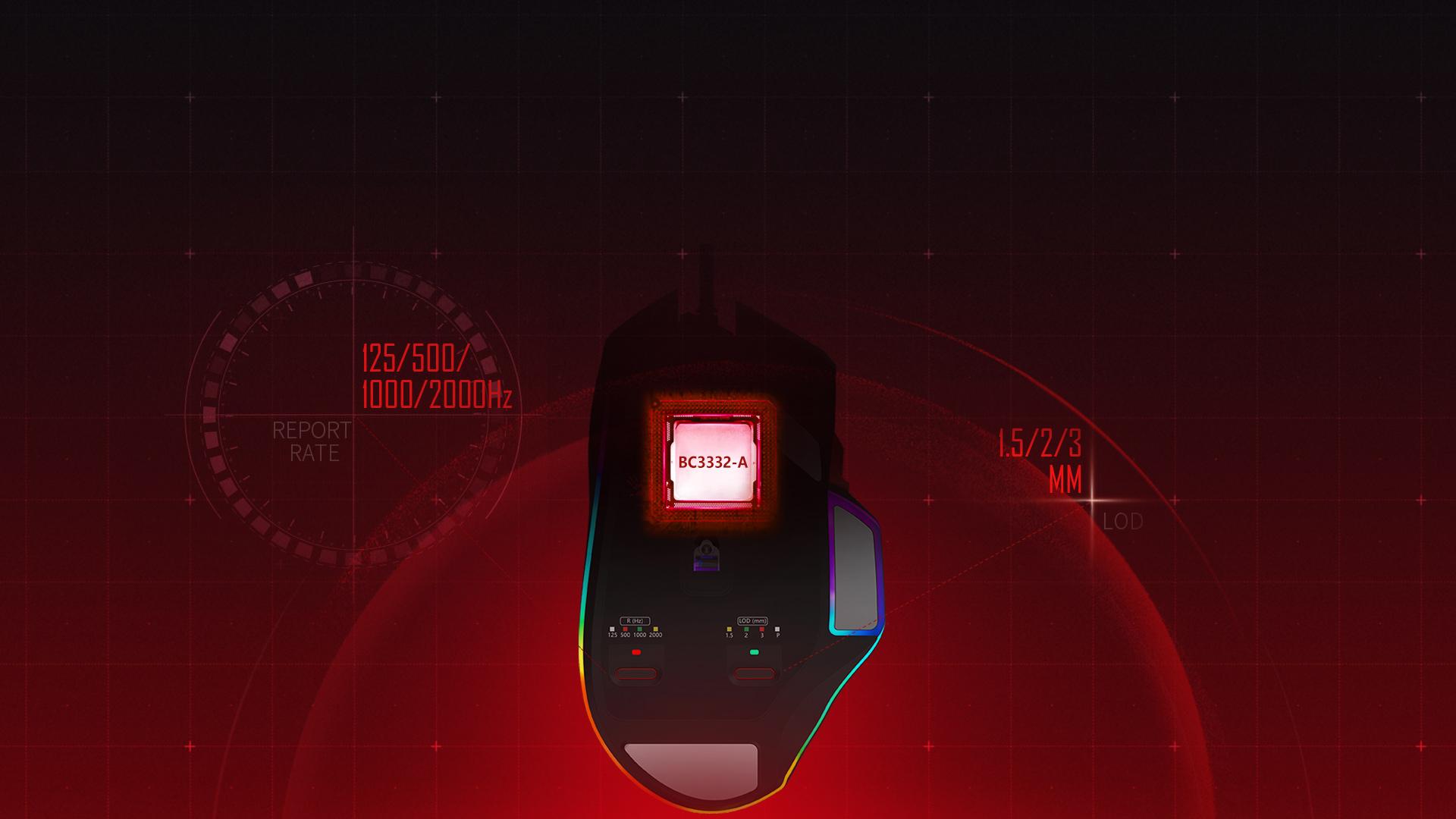 | Personalized the Lift Off Distance to pair with your surrounding gaming habits. Customize LOD that best provides the accuracy and controllability for you. | Equipped with 4M onboard memory, can store as many as 120K macros. | You can control 3 weapon modes (1/N/3) of Left Key with extra fire wheel. |