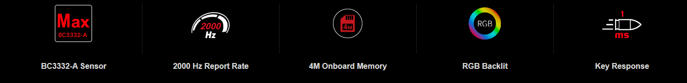 | Sensor | MAX BC3332-A 12K Sensor | Button Lifetime | Over 50 Million Clicks ( Left / Right Button ) |