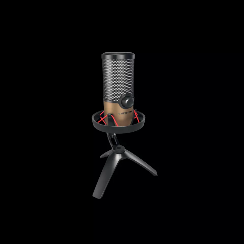 Sturdy three-legged metal stand, sleek design, and incredibly easy to use.The combination of matte black and tasteful copper gives the CHERRY UM 9.0 PRO RGB a very sophisticated look. The stylish USB microphone was even awarded the “Special Mention” German Design Award in the “Excellent Product Design” award category in the subcategory, “Entertainment”. Thanks to its stable, three-legged stand made of solid metal, the USB microphone is always securely in place when gaming, vlogging or streaming. On top of that, it is incredibly easy to use: Simply take the mic out of its plastic-free packaging, connect it via the USB cable that is included, and you're ready to go. Unpack, plug in, and record – without having to install any software. The chic gaming microphone is suitable for PC, PS4, PS5, and Mac. |