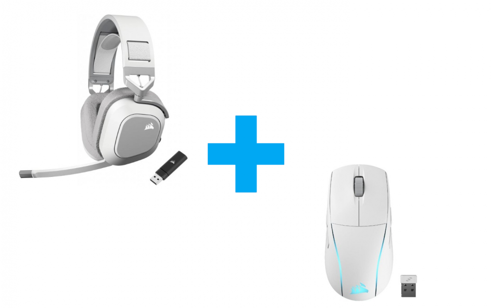Corsair M75 White Wireless + Corsair HS80 MAX White