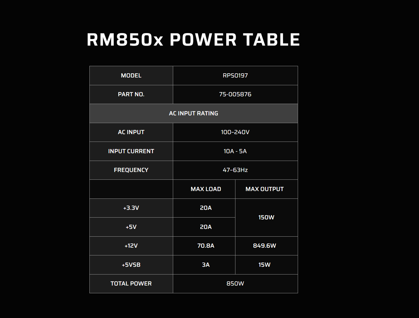 | PATA Connector | 3 | Continuous Power W | 850 Watts |