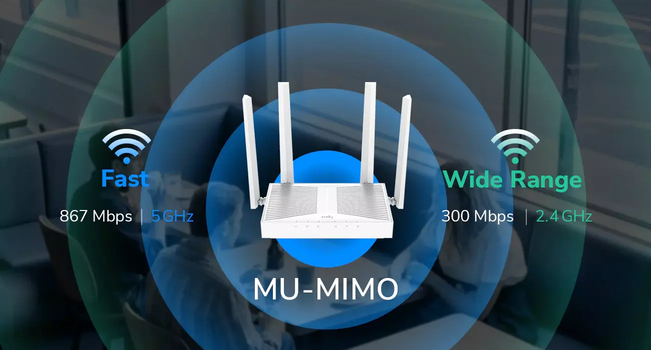Impress your customers with fast and responsive dual-band Wi-Fi, capable of speeds up to 1200 Mbps. MU-MIMO technology allows for the simultaneous transmission of multiple data streams to multiple devices, improving efficiency and throughput under heavy use.