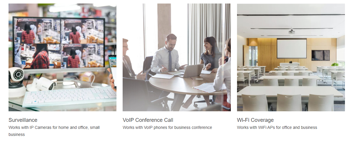 ● Putere de iesire de la 120 W PoE, pana la 32 W pentru un singur port PoE