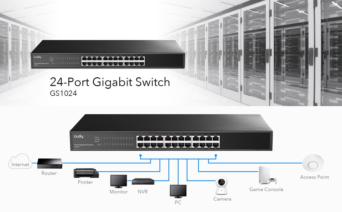 Switch Cudy GS1024, 24 porturi, 10/100/100, Auto-MDI/MDIX pentru 19" rack