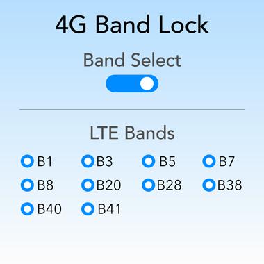 4G band lock makes it possible to lock the 4G working frequency to one or several bands to keep the stability of operation.