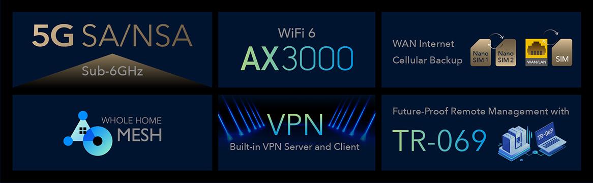 AX3000 Wi-Fi 6 5G SA/NSA Router | |||