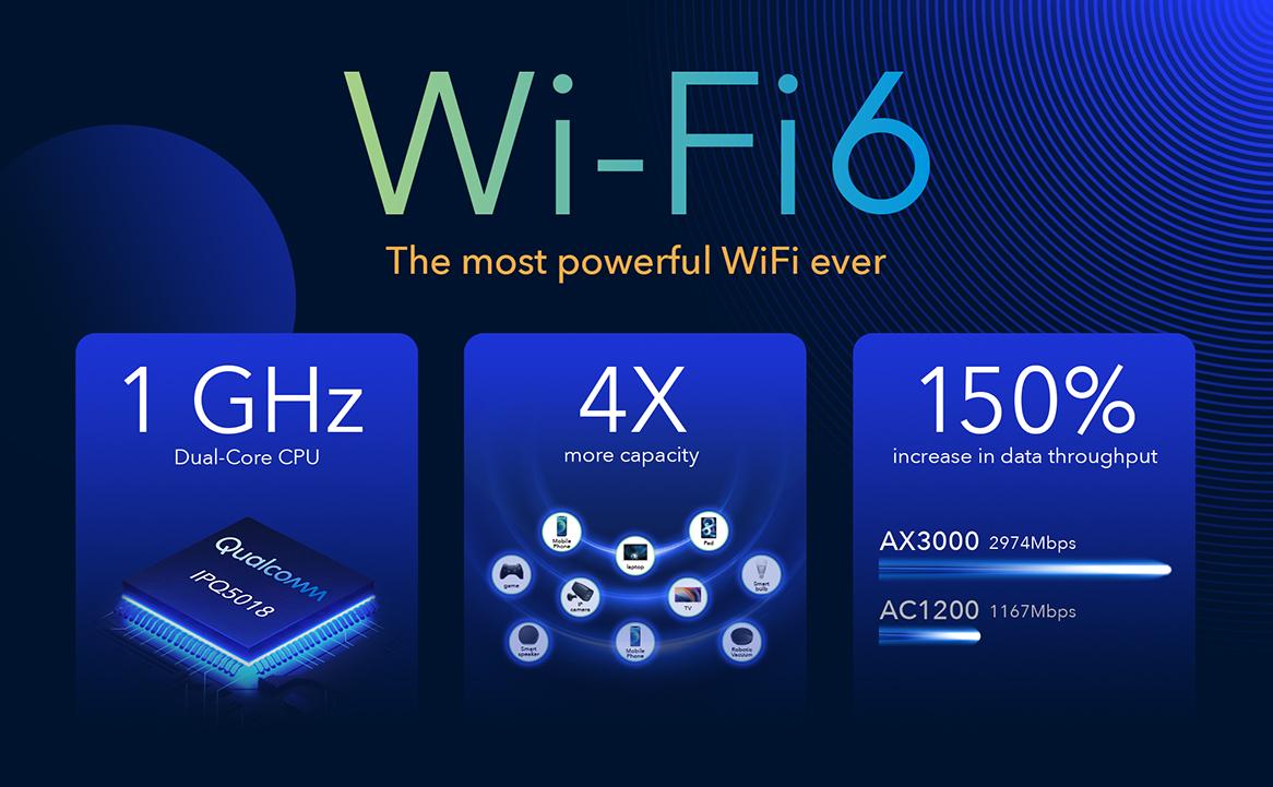 Full 160 Mhz channel width enables peak speed at 2402 Mbps on the 5 GHz band, best for lag-free gaming and live streaming in flawless quality. Far-reaching 2.4 GHz signal covers an expansive area, so you can enjoy the network in the backyard. OFDMA and powerful CPU enables 4× capacity for more devices.