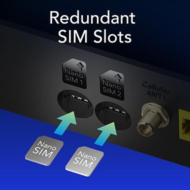 Dual SIM slots provide redundancy and Dual Nano SIM slots for redundant backup. Both SIM slots can be filled. Auto and manual mode is available for redundancy settings