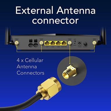 Set WAN/LAN port as WAN to further assure staying online. Detachable cellular antennas enable reception optimization by plugging extension cables up to 12 meters* into SMA interface connectors.