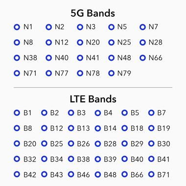 | 5G NSA Sub-6: Max. 3.3Gbps (DL)/650Mbps (UL) | ||||
