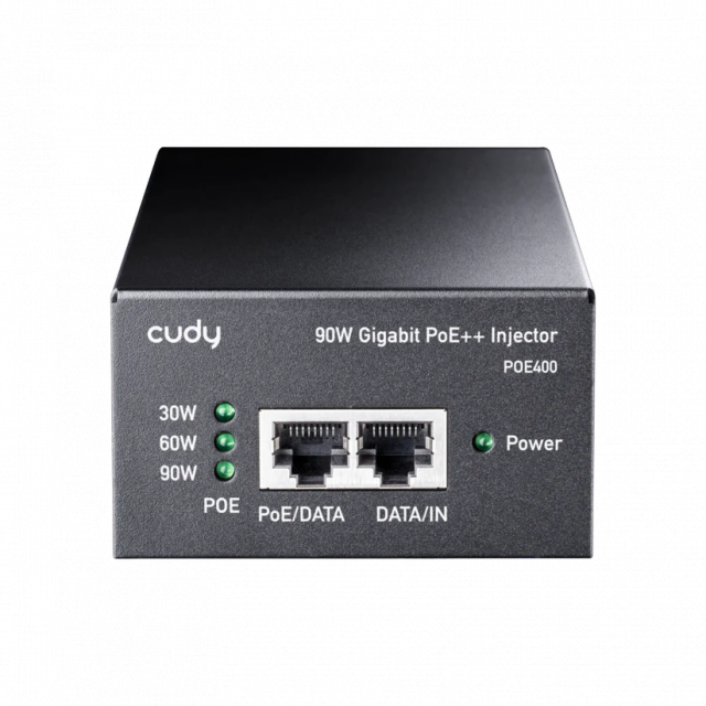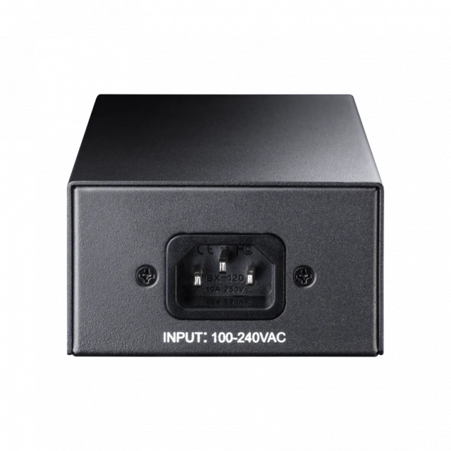 Un adaptor PoE montat pe perete, care injecteaza o putere de pana la 90W la cablul Ethernet pentru a alimenta