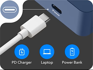 Power it with your laptop or phone charger through the USB-C Power Jack. The third-party power supply needs to be 5V / 3A or equipping PD.