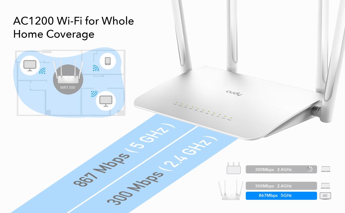 ● Viteza Wi-Fi de banda duala AC1200