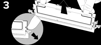 Dacă este necesar, eliminați memoria preexistentă apăsând în jos urechile de blocare/ejector. Ei sunt situate la ambele capete ale slotului de memorie.
