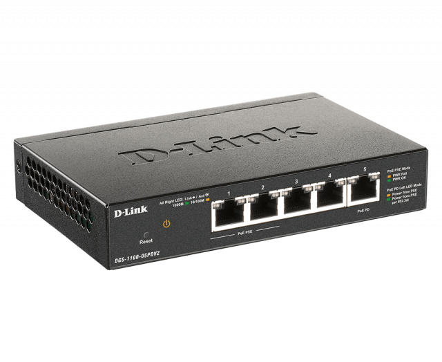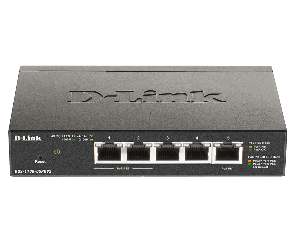 Switch D-Link DGS-1100-05PDV2, 5 porturi 10/100/1000 Gigabit Smart Switch, PoE, Cu management