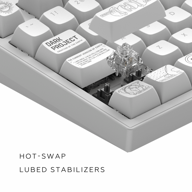 Tastatura mecanica gaming Dark Project ALU81A Terra Nova White RGB, Wireless, G3MS Moonstone Switches, PBT