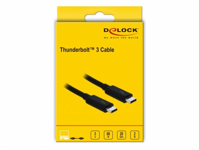 Cablu Delock Thunderbolt™ 3 (20 Gb/s) USB-C™ cablu tata > tata pasiv 2.0 m, 3 A, negru
