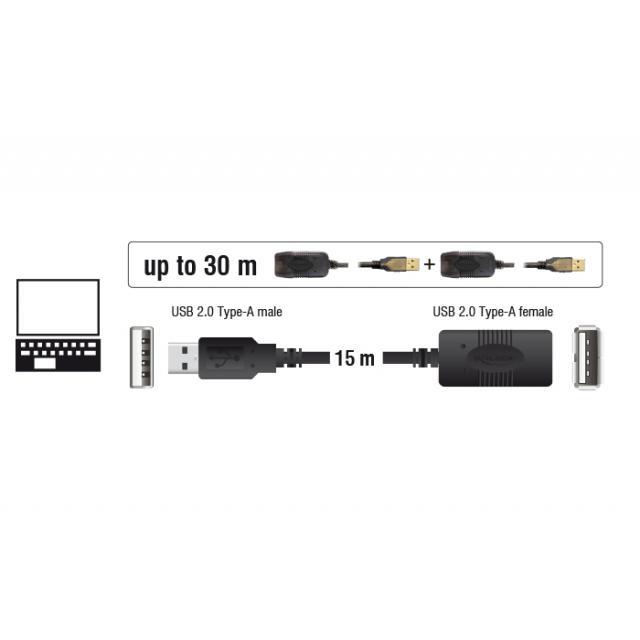 Cablu prelungitor DeLock, USB-A mama - USB-A tata, USB 2.0, 15 m, Negru