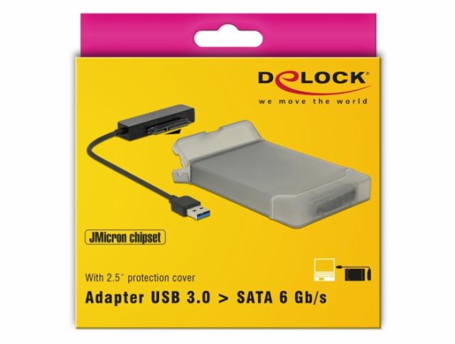 Delock Converter USB 3.0 Type-A male > SATA 6 Gb/s 22 pin with 2.5″ Protection Cover