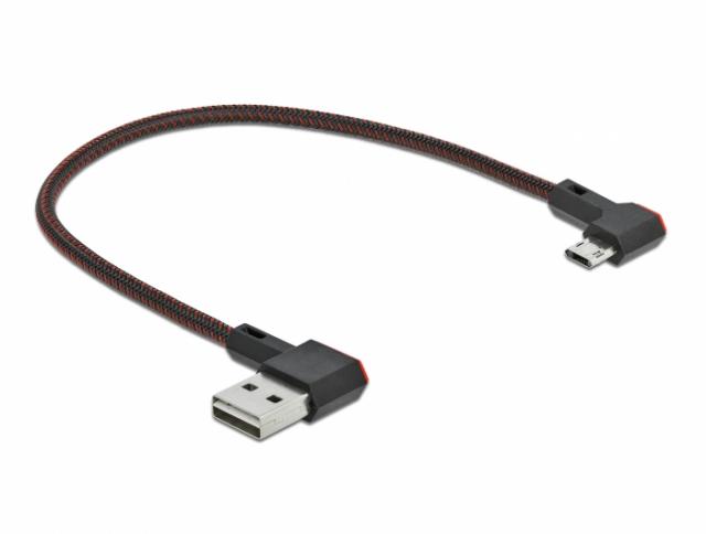 Cablu DeLock, EASY-USB 2.0 Type-A tata - EASY-USB Micro-B tata, 0.2 m, Unghi 90°, Negru