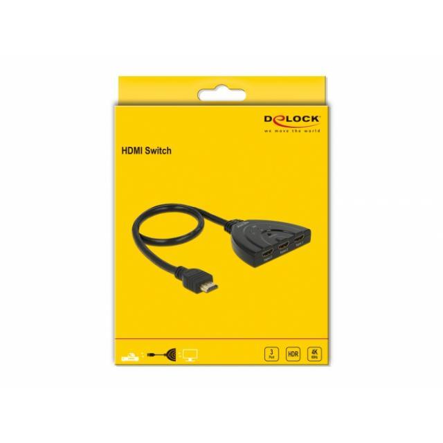 Switch Delock HDMI UHD 3 x HDMI intrare > 1 x HDMI iesire 4K cu cablu integrat 50 cm