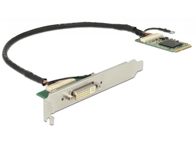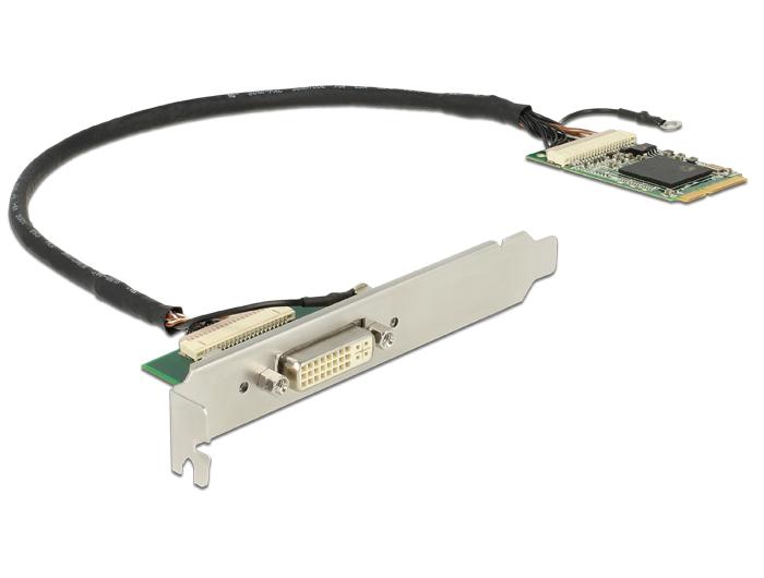 Acest adaptor Mini PCIe de la Delock extinde PC cu un port de iesire DVI. La aceasta interfata se poate conecta, de ex., un afisaj DVI. Cu ajutorul consolei cu fanta incluse, portul DVI poate beneficia de iesire pentru conectare.