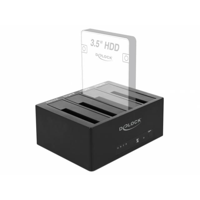 Docking station USB 3.0 Delock, pentru 4 X HDD/SSD SATA 2.5" + 3.5" + functie clonare