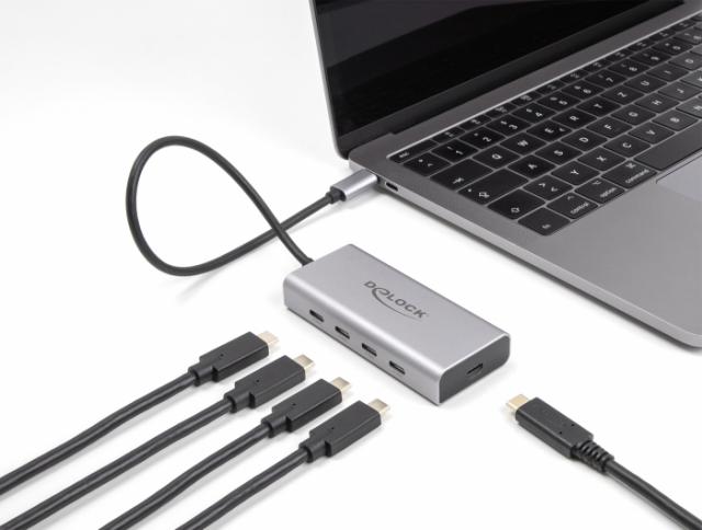 Hub-ul USB de la Delock este companionul mobil pentru laptopuri sau tablete cu conexiune USB Type-C™. Pana la 4 dispozitive USB Type-C™ pot fi conectate la hub.